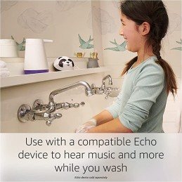 Excelente dispensador de jabón de Amazon recargable. Utilízalo con un dispositivo Echo compatible para que Echo inicie automáticamente una Alexa routine personalizada mientras te lavas las manos. Disfruta de un fragmento de tu canción favorita, ríete con sus chistes, aprende y mucho más. Selecciona la cantidad de jabón puedes seleccionar 3 cantidades diferentes de jabón. Cuanto más abajo de la boquilla coloques tus manos más jabón dispensara. Al retirar tus manos, el dispensador se detendrá. Si deseas aún más jabón activa el modo de dispensa elevada presiona dos veces el botón de encendido para activar este modo. Recargable una carga dura hasta tres meses.